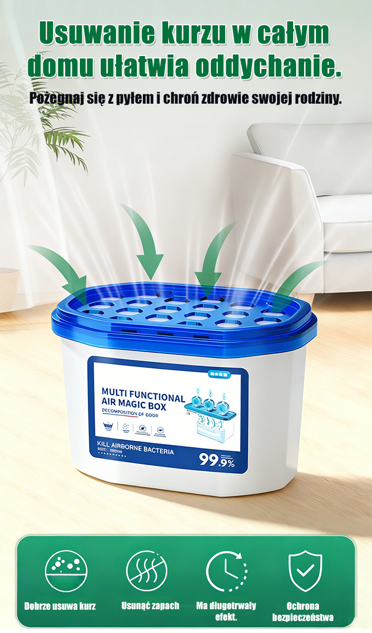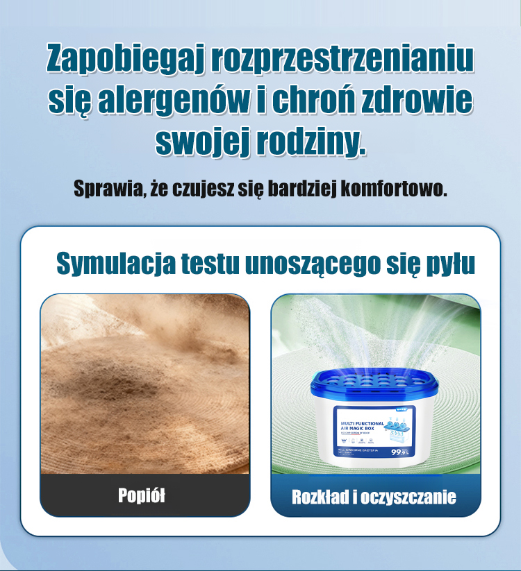 👶 Bezpieczny dla całej rodzinyRedukuje kurz, pyłki, dym tytoniowy → ochrona dla dzieci & kobiet w ciąży.Certyfikaty UE → bezpieczny do sypialni, pokoi dziecięcych.